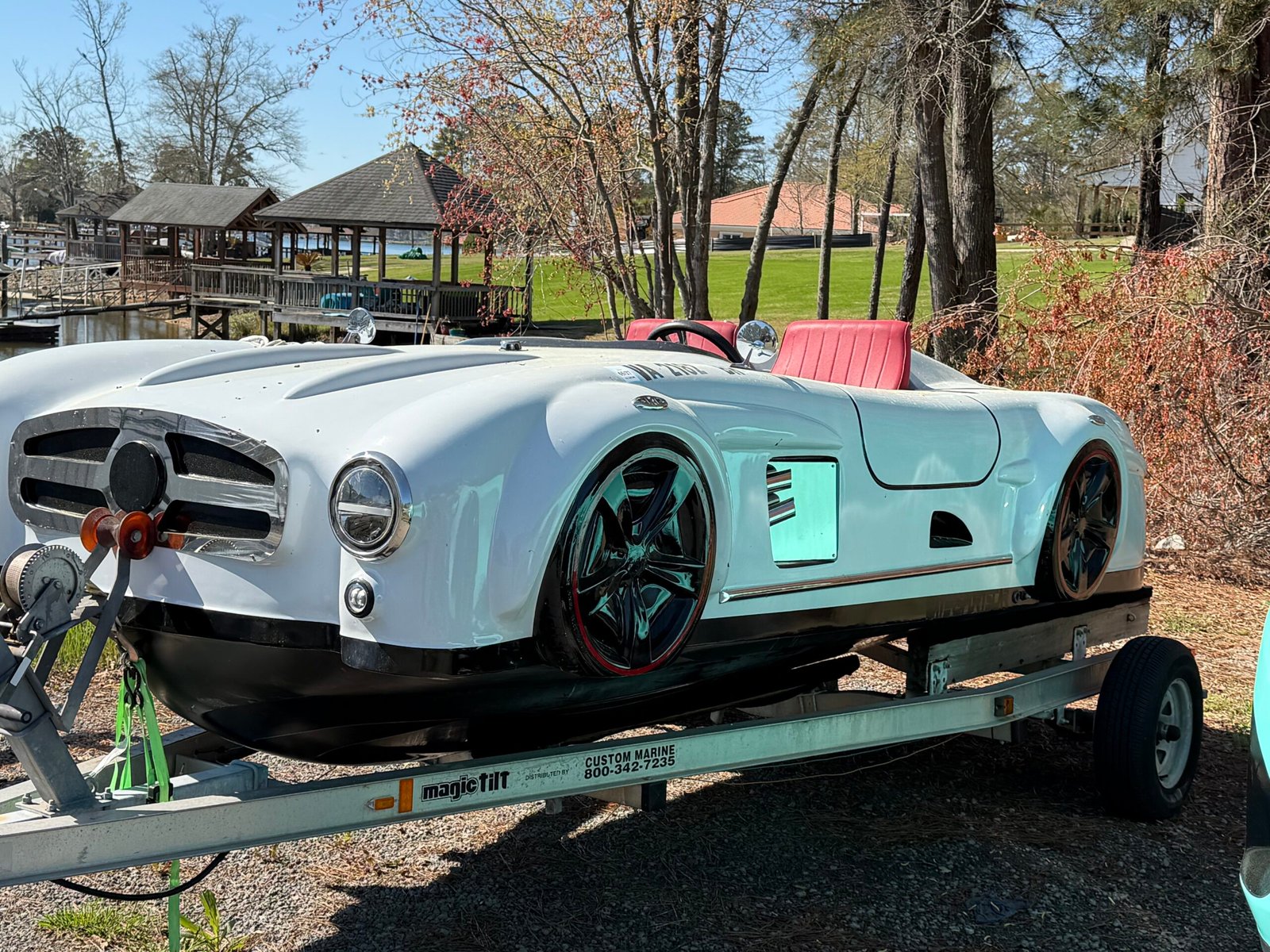 This Jet Car that looks a lot like a Mercedes Roadster has a 300hp wave runner engine and can fit 2 people. It also includes a trailer at no additional cost.